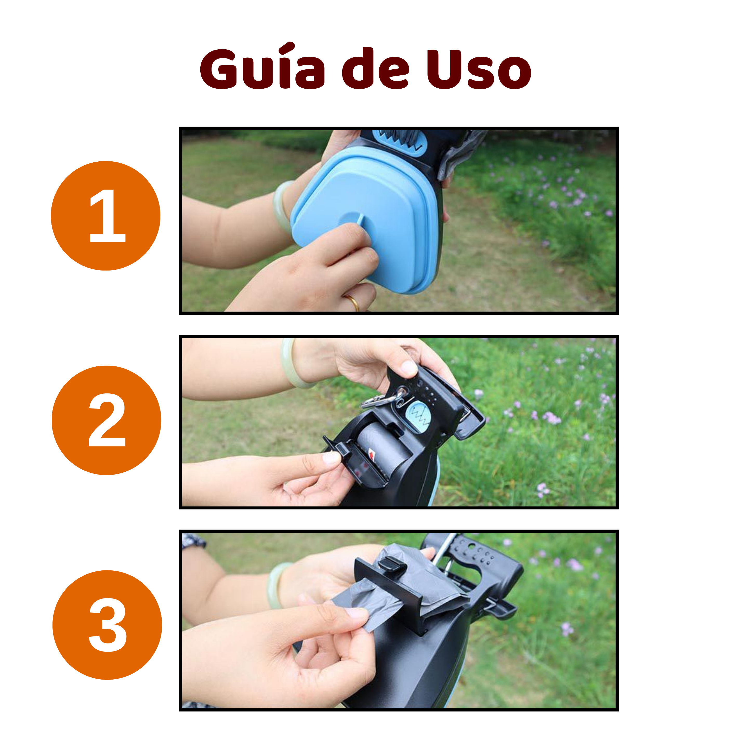 Gracias al compartimento integrado para bolsas, tus manos no se ensucian en ningún momento al recoger las heces.