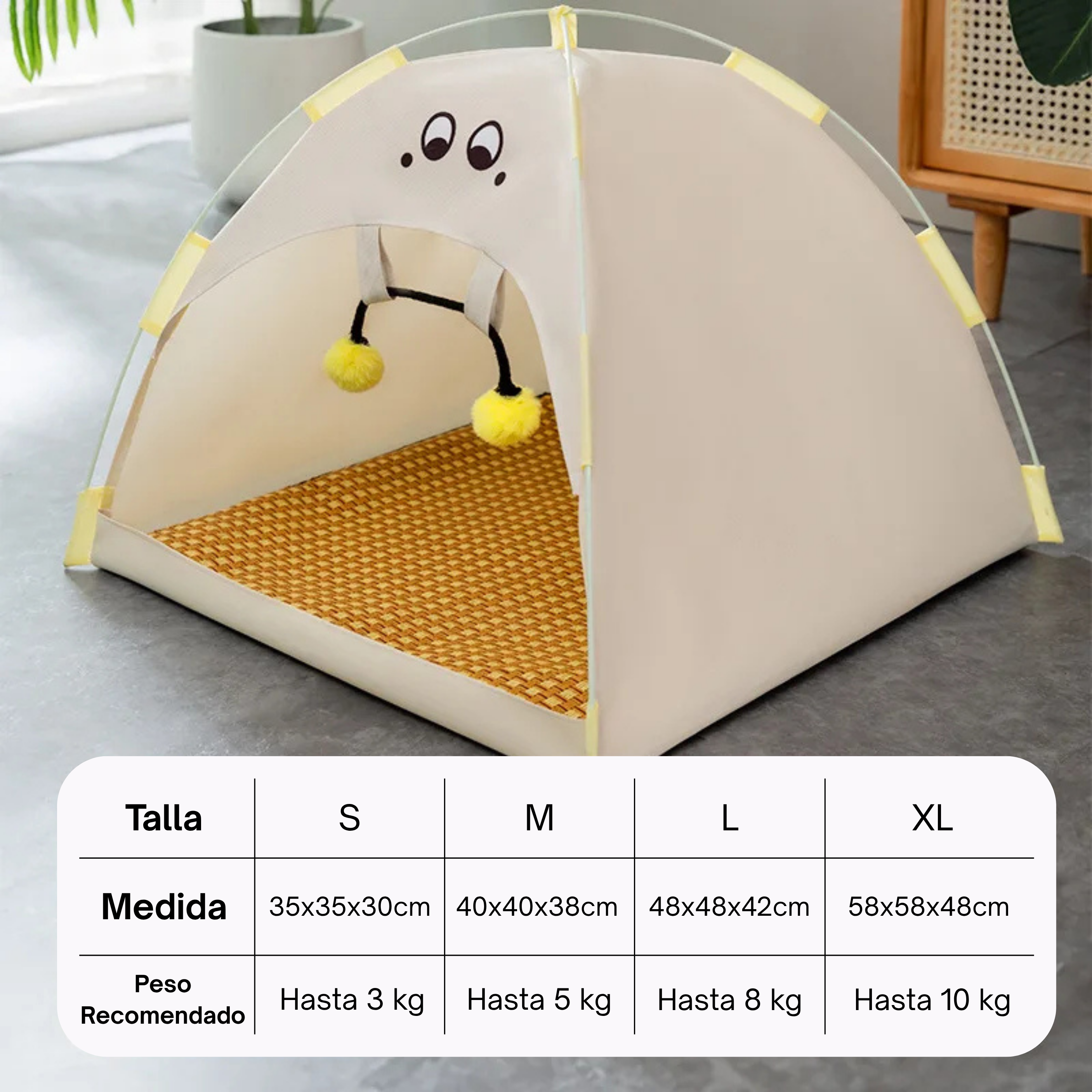 El pompón colgante en la parte superior de la tienda ofrece entretenimiento y comodidad al mismo tiempo.